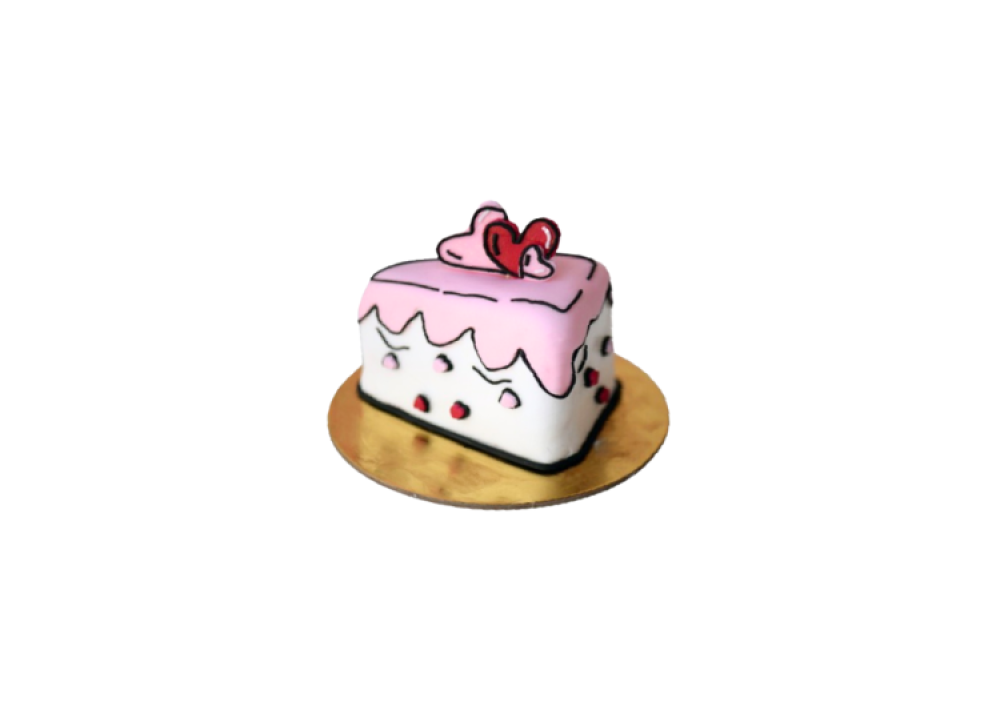 كوميك كيك (رسمة قلوب) – رد فلفت كيكة رد فلفت إسفنجية ناعمة، بطابع كوميك كرتوني فريد يُظهر رسمة قلوب لطيفة ومبهجة. تصمي